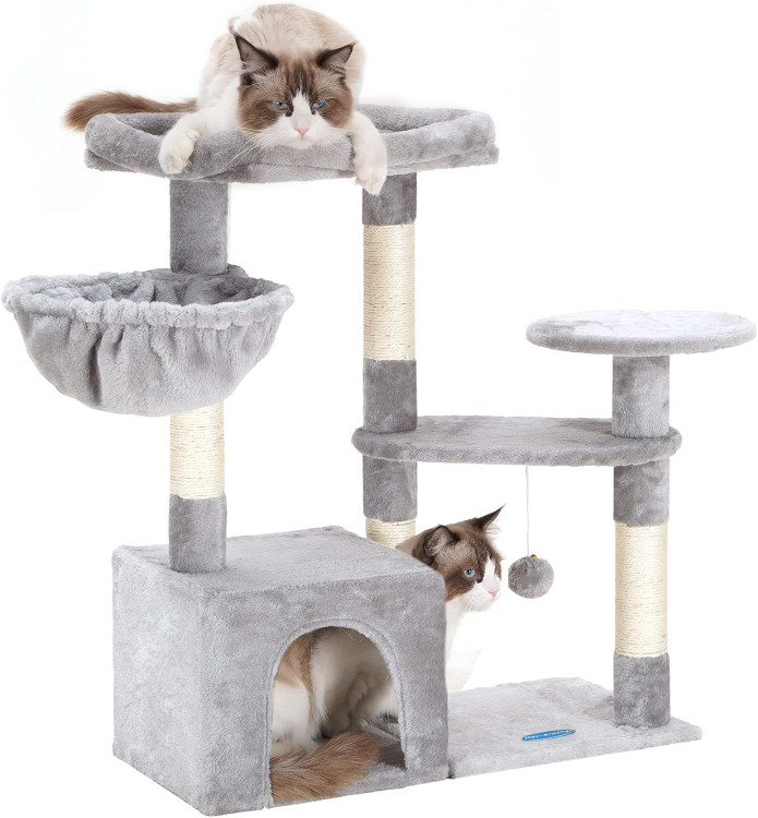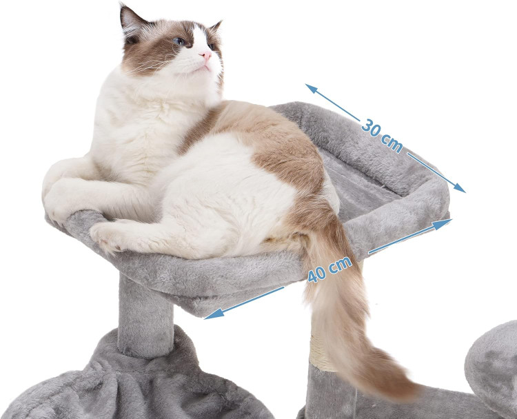 درخت گربه چندطبقه Hey-brother با سبد و سکوی بزرگ خاکستری ( وارداتی از آمازون فرانسه)