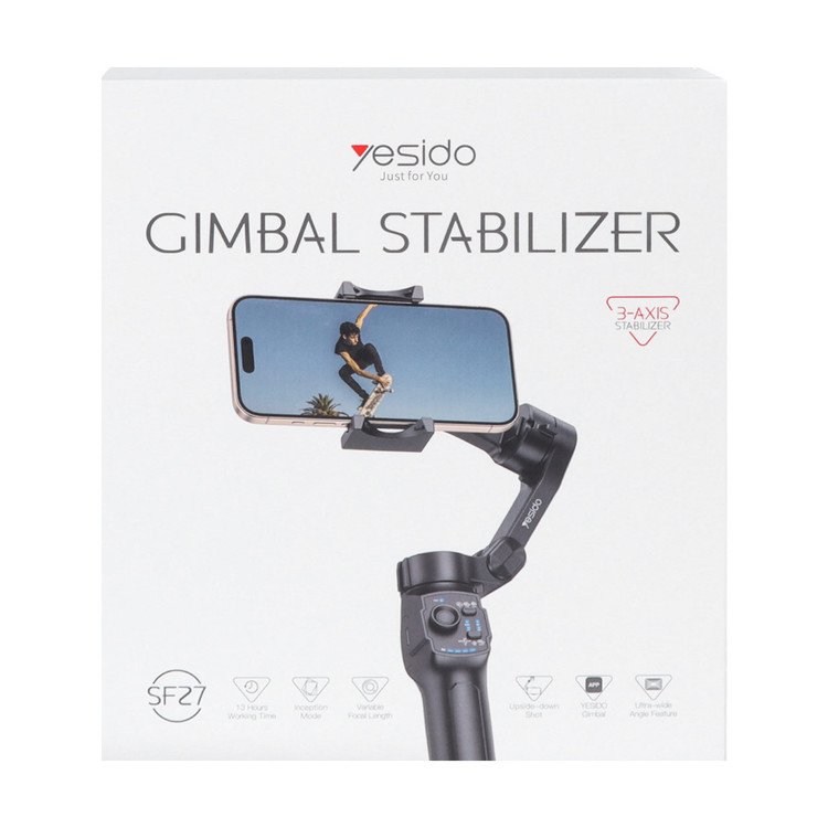 گیمبال YESIDO SF27 یک استابلایزر حرفه ای و چندمنظوره برای فیلم برداری با موبایل است که با بهره گیری از سیستم تثبیت کننده سه محوره، تجربه ای بی نظیر از تصاویر روان و بدون کوچکترین لرزش را فراهم می کند. این دستگاه با کنترل دقیق حرکات در سه محور Pitch (۱۶۰ درجه)، Roll (۳۲۵ درجه) و Yaw (۳۴۰ درجه)، تمامی تکان های ناخواسته دست را حذف کرده و کیفیت ویدئوهای شما را به سطح سینمایی می رساند. بدنه این محصول از ترکیب مقاوم ABS، GF و استیل ساخته شده است که دوام بالای آن را در شرایط مختلف تضمین می کند.