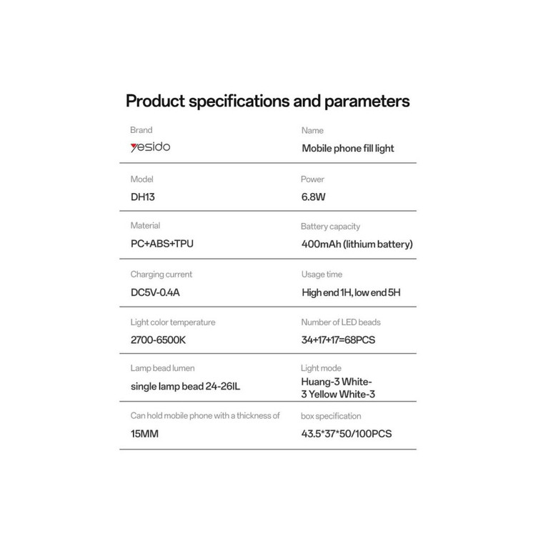 با تهیه این محصول، شما همیشه یک منبع نور حرفه ای در اختیار دارید. Yesido DH13 به شما کمک میکند تا بدون نیاز به تجهیزات گرانقیمت، خروجیهای تصویری خود را به سطح حرفهای نزدیک کنید.