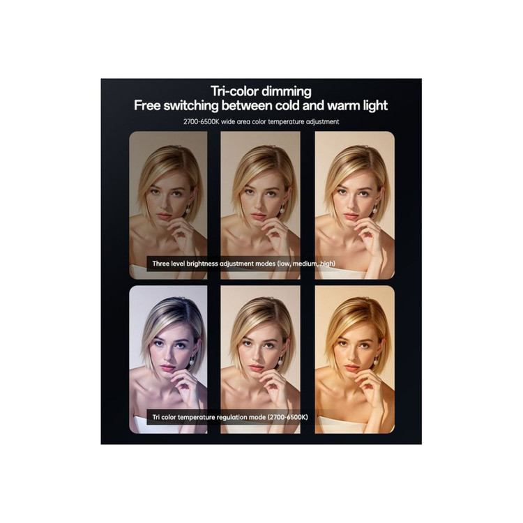 این چراغ سلفی با بهرهگیری از ۶۸ عدد LED پرقدرت، نوری یکنواخت و بدون سایههای مزاحم را به چهره شما میتاباند. یکی از ویژگیهای برجسته این مدل، قابلیت تنظیم نور در ۳ حالت رنگی (گرم، سرد و مخلوط) است که با محدوده دمای رنگی ۲۷۰۰ تا ۶۵۰۰ کلوین، به شما اجازه میدهد متناسب با نور محیط، بهترین اتمسفر را برای عکاسی یا میکاپ خود ایجاد کنید.