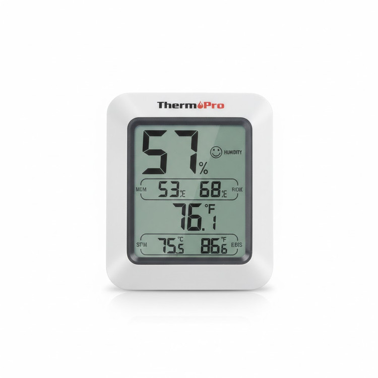 دماسنج و رطوبت سنج دیجیتال ترموپرو (ThermoPro) یک ابزار اندازه گیری دقیق برای نظارت بر کیفیت هوای فضاهای بسته است. این دستگاه با نمایش همزمان دما و میزان رطوبت، به شما کمک می کند تا محیط زندگی خود را در شرایط ایده آل نگه دارید. طراحی هوشمندانه این محصول شامل یک شاخص سطح راحتی (Comfort Indicator) به شکل آیکون لبخند است که وضعیت مطلوب یا نامطلوب هوا را از نظر ترکیب دما و رطوبت به سادگی نشان می دهد.