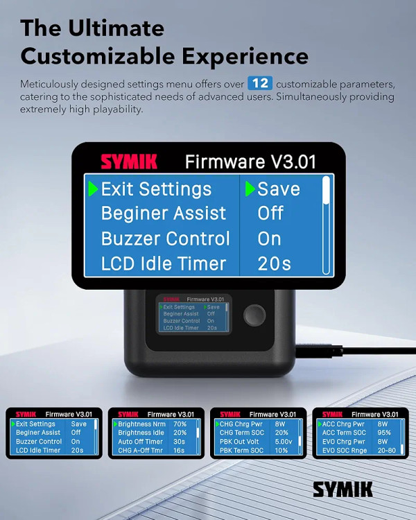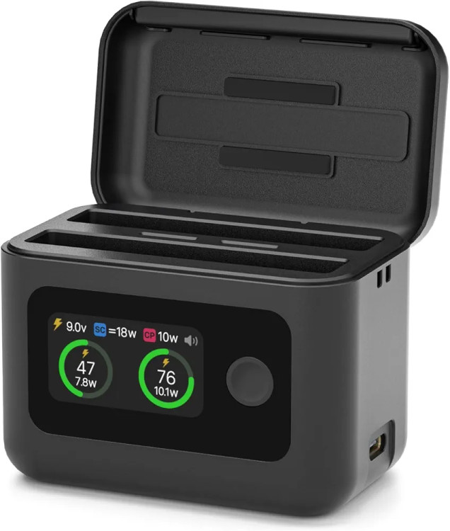 شارژر دوتایی و پاوربانک باتری Insta360 X5 برند SYMIK | فست شارژ 27 وات با نمایشگر LCD