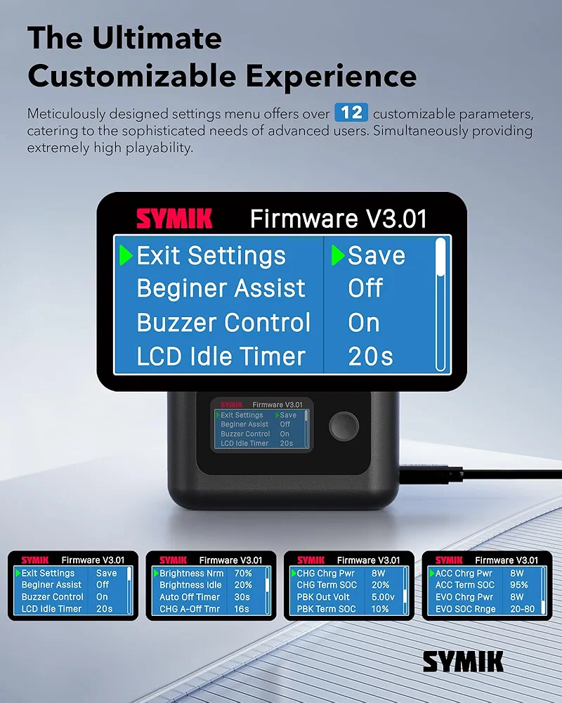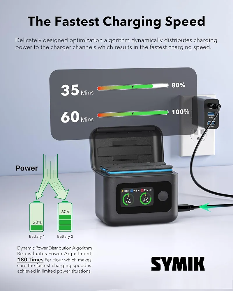 شارژر دوتایی و پاوربانک باتری Insta360 X5 برند SYMIK | فست شارژ 27 وات با نمایشگر LCD