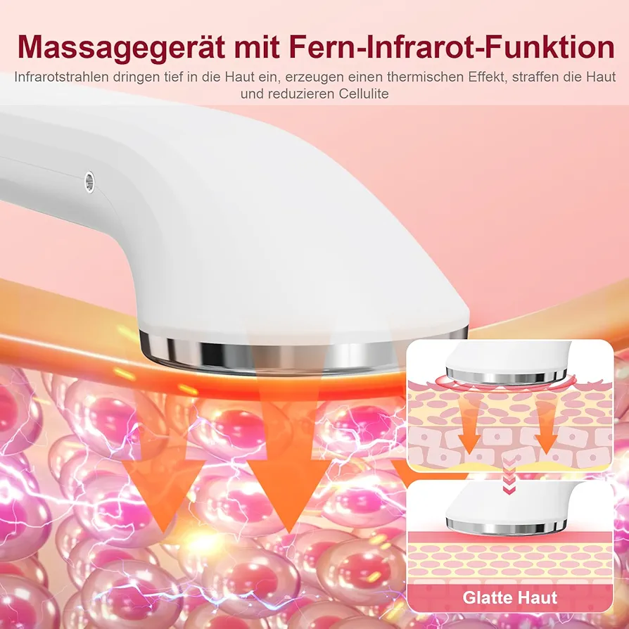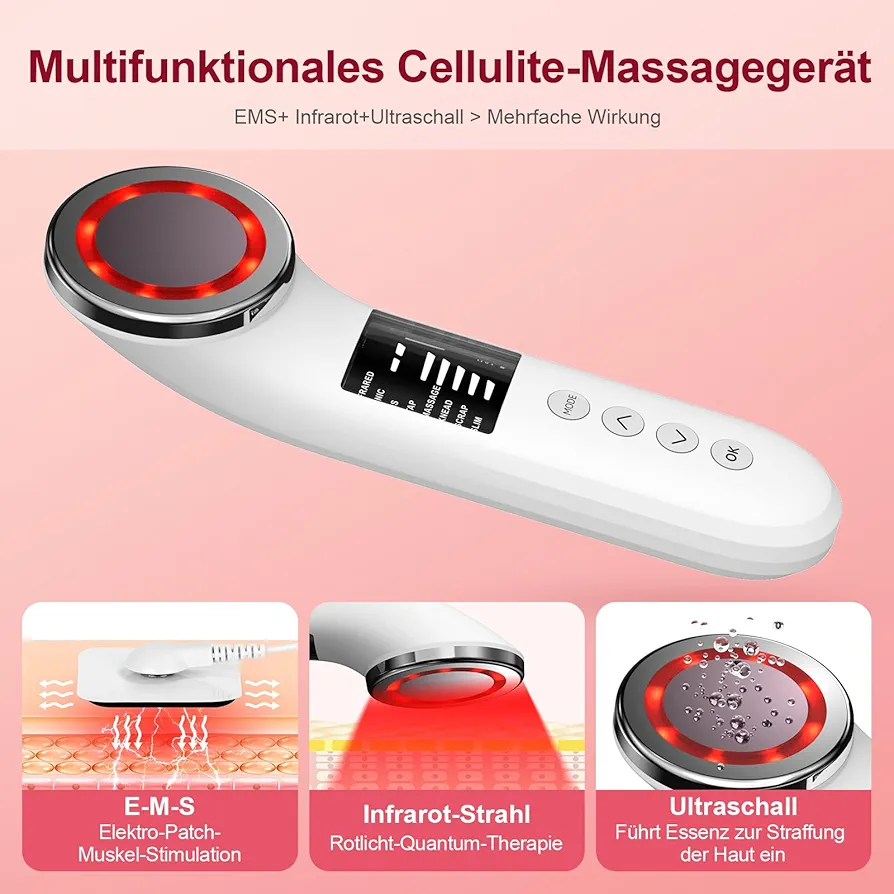 راز اثربخشی این ماساژور در ترکیب دو تکنولوژی پیشرفته کلینیکی نهفته است: فناوری اولتراسونیک (امواج فراصوت) و گرمایش مادون قرمز. امواج اولتراسونیک با ایجاد لرزشهای بسیار ریز و عمیق، به لایههای زیرین پوست نفوذ کرده و بافتهای چربی متراکم را تحریک و تجزیه میکنند. همزمان، سیستم گرمایش مادون قرمز باعث افزایش شدید گردش خون در ناحیه مورد نظر شده و متابولیسم موضعی را بالا میبرد. این ترکیب قدرتمند نه تنها ظاهر ناهموار پوست (پوست پرتقالی) را به مرور زمان از بین میبرد، بلکه باعث لیفت، سفت شدن و جوانسازی بافت پوست نیز میشود.