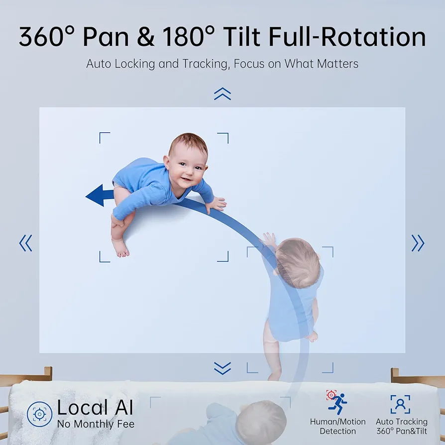 برای از بین بردن نقاط کور در خانه، این مدل به موتور چرخشی قدرتمندی مجهز شده است که امکان چرخش 360 درجه افقی و 180 درجه عمودی را از طریق اپلیکیشن موبایل فراهم میکند. علاوه بر این، فناوری تشخیص هوشمند انسان و صدا باعث میشود تا در صورت بروز هرگونه تحرک مشکوک یا صدای گریه کودک، بلافاصله یک اعلان (Push Notification) روی گوشی هوشمند خود دریافت کنید.