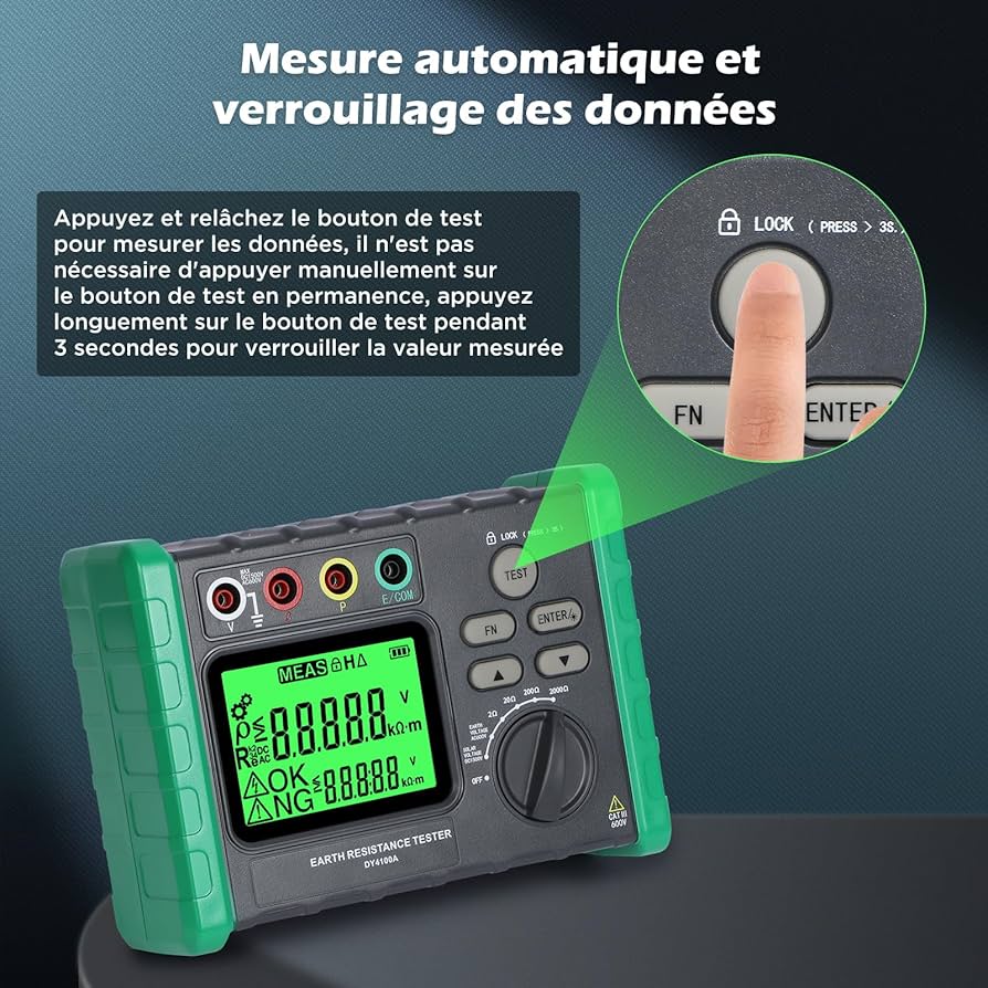 اگر به دنبال خرید تستر مقاومت زمین KAISAL DY4100A هستید، این دستگاه بهترین انتخاب برای مهندسان برق و تکنسینهای صنعتی است. این ارت تستر دیجیتال KAISAL با قابلیت اندازهگیری دقیق از ۲ تا ۲۰۰۰ اهم، یک دستگاه اندازهگیری مقاومت ارت حرفهای محسوب میشود. استفاده از میگر مقاومت زمین چهار سیمه دقت بسیار بالایی را تضمین میکند. این تستر ولتاژ AC و DC دیجیتال میتواند ولتاژهای تا