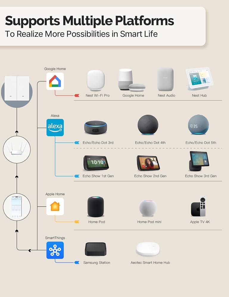 سازگاری با تمامی سیستمهای اصلی خانه هوشمند بدون نیاز به هاب اضافی، آزادی از قفل اکوسیستمی
