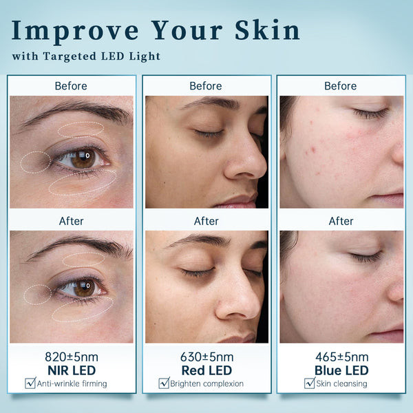 درمان LED فوتوتراپی یک روش کاملاً غیرتهاجمی است که توسط ناسا برای ترمیم زخم توسعه یافت و امروزه در کلینیکهای پوست سراسر جهان بهکار میرود. RB‑081 همین فناوری را با ۸ طیف نور تخصصی در اختیار شما قرار میدهد. نور قرمز و مادونقرمز به لایههای عمیق پوست نفوذ کرده و تولید کلاژن را تحریک میکنند. نور آبی باکتریهای مولد جوش را از بین میبرد و نور سبز و زرد رنگ پوست را یکنواخت و شفاف میکند. با ۹ حالت درمانی از پیش تنظیمشده، هر شب یک پروتکل حرفهای برای پوستتان داشته باشید.