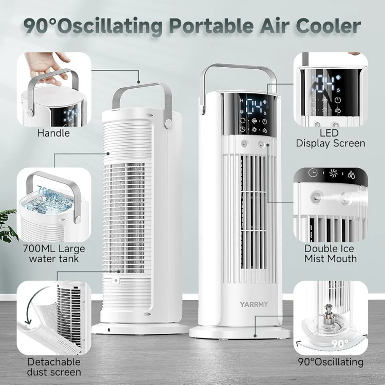 کولر قابل حمل مدل F20 | سرمایش تبخیری ، نوسان ۹۰ درجه، رطوبتساز، مناسب اتاق، میزکار و سفر