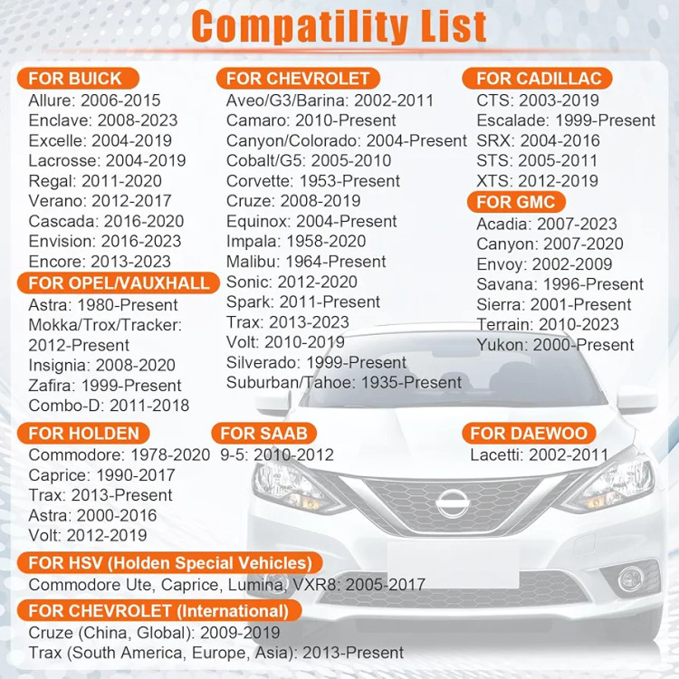 خودروهای سازگار: GM (Buick، Chevrolet، Cadillac، GMC)
