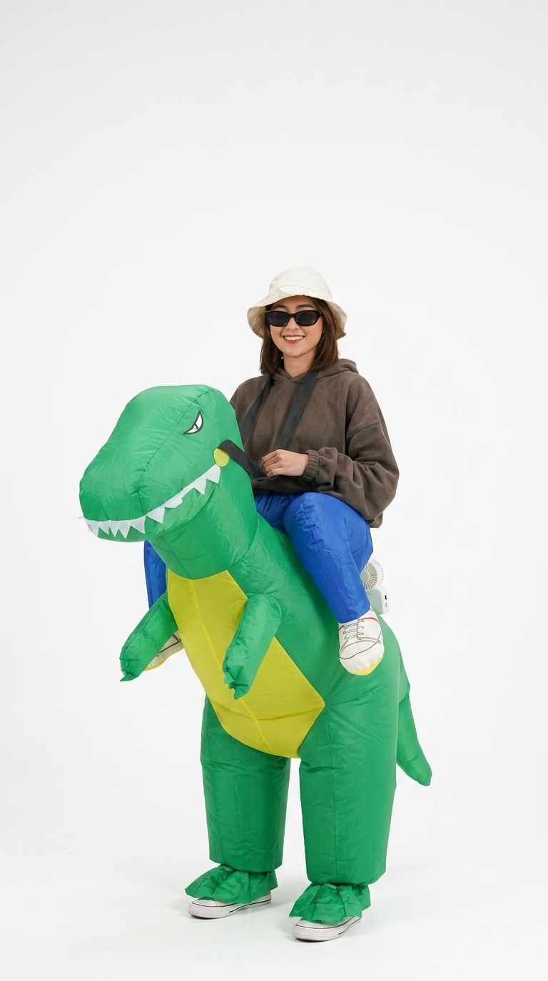 ظاهر سبز و فرم بادی دایناسور باعث میشود در جمع بهراحتی دیده شوید و فضای شادی ایجاد کنید.