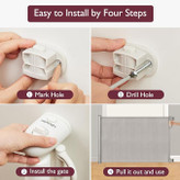- استفاده آسان : کافیست دکمه قفل را با یک دست فشار دهید و گیت را باز یا بسته کنید، حتی زمانی که کودک را در آغوش دارید یا اسباب بازیهای بار میکنید.