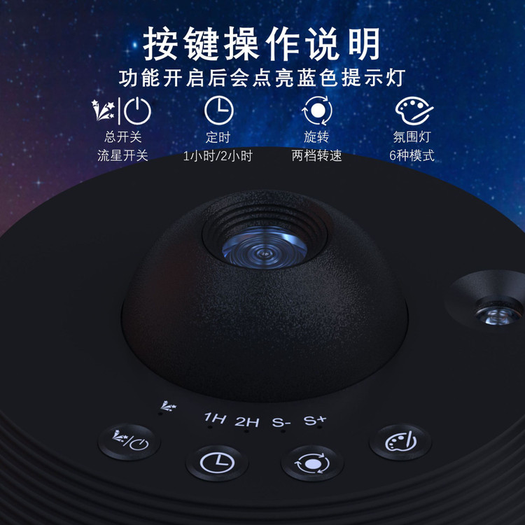 2. کلید را فشار دهید : پروژکتور را روشن کنید و به تماشای جذابیتهای کیهانی بپردازید.