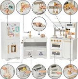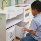 آشپزخانه چوبی بازی Teamson Kids Little Chef Atlantaبا طراحی ماژولار و رنگهای جذاب سفید، آبی و طلایی، یک انتخاب عالی برای کودکان بالای 3 سال است. این آشپزخانه شامل سه بخش مجزا است: یخچال، سینک و اجاق گاز، که بهراحتی میتوان آنها را بر اساس نیاز و فضای اتاق کودک تنظیم کرد. با امکانات تعاملی مثل دکمههای کلیکی اجاق، یخساز داخل یخچال، و درب مغناطیسی یخچال، این آشپزخانه بازی تجربهای شبیه به دنیای واقعی برای کودکان ایجاد میکند. همچنین با 17 وسیله جانبی از جمله قابلمه، ماهیتابه، قهوهساز و تخممرغهای شکافتنی، ساعتها سرگرمی و خلاقیت برای کودکان فراهم میشود.