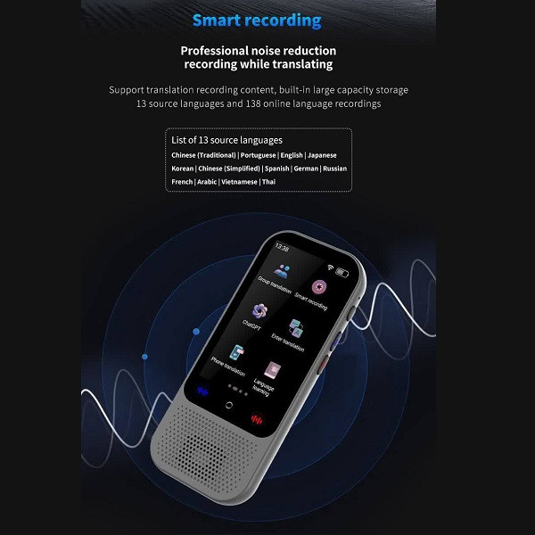 این مترجم با دوربین داخلی و قابلیت ترجمه تصویری، میتواند متون و علائم را به سرعت اسکن و ترجمه کند، تجربهای بیهمتا را در اختیار شما قرار میدهد. پردازش زبان با هوش مصنوعی در این دستگاه، ترجمههایی سریع و دقیق فراهم میسازد و تضمینگر ارتباطات روان و بیدغدغه در سفرهای شماست.